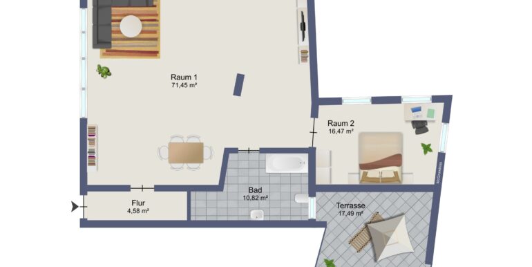 Ein zusätzlicher Mehrwert ist die Terrasse, die den Wohn- bzw. Vermietungskomfort deutlich erhöht. Ein Stellplatz muss für 10.000 EUR zusätzlich erworben werden.